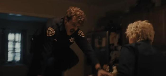 影片喜剧是和恐怖氛围融为一体,比如流浪汉和警察的对手戏,会让你悬着的心放松一下,接下来又悬得更紧。